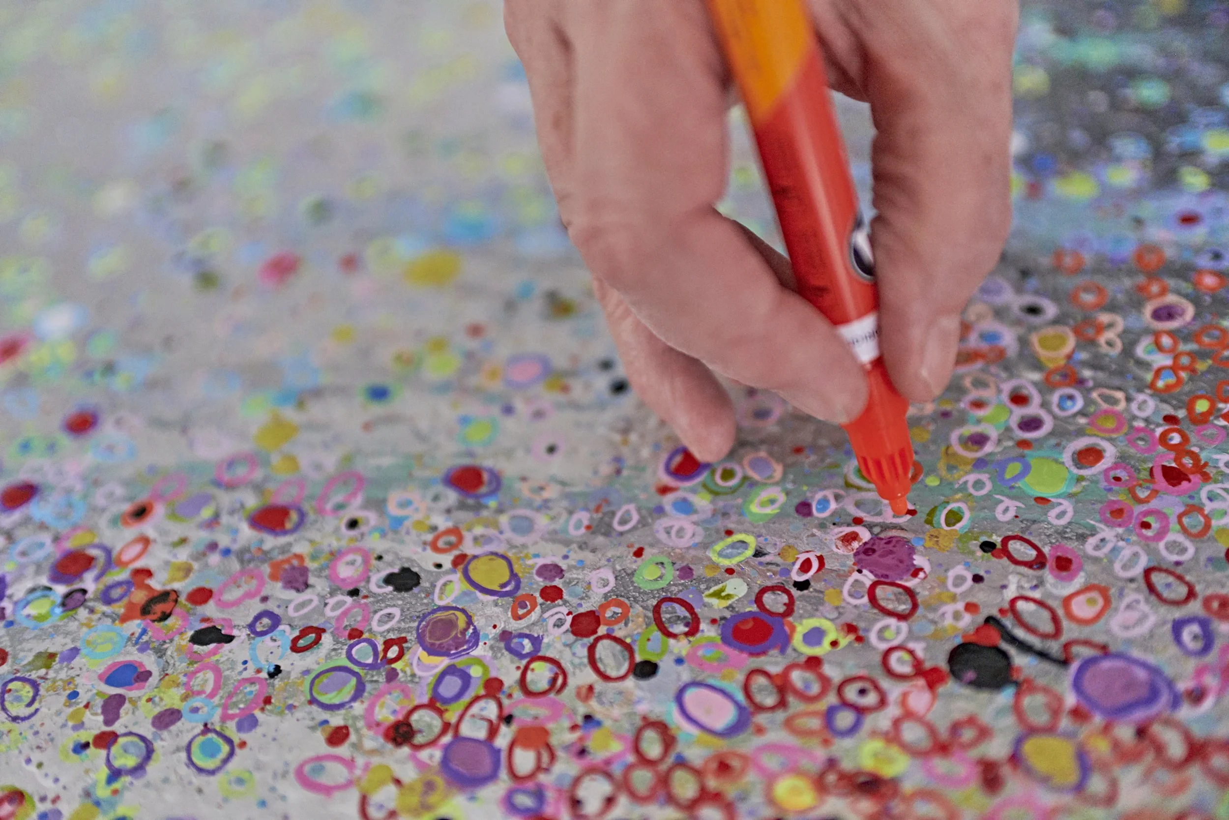I chose FREQUENCIES because it points to two truths at once. First, every color corresponds to a measurable vibration on the electromagnetic spectrum. Second, we each carry our own emotional frequency, and it changes minute by minute. My hope is that these paintings help tune the viewer—much like a musician tunes an instrument—until eye, mind, and heartbeat slip into a shared rhythm.